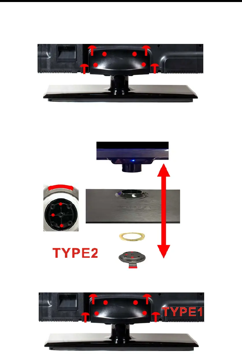 3. To remove the stand, remove the 4 fine threaded screws indicated in the picture