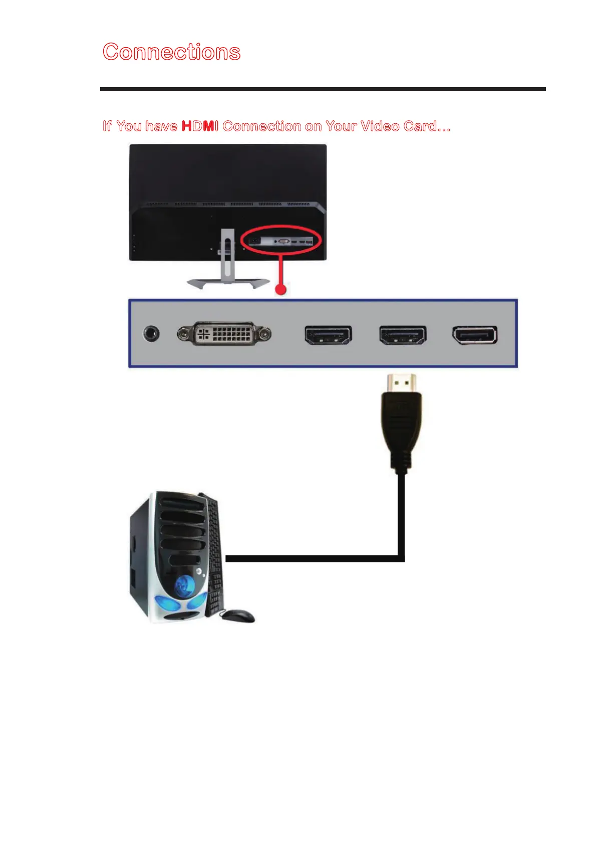 2. Obtain a HDMI cable and connect one end to the back of the monitor and