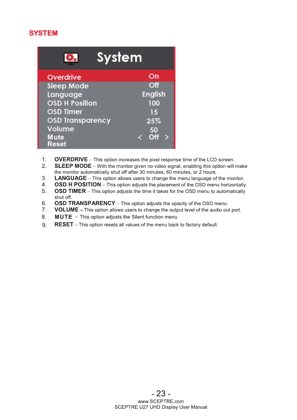 Bekijk gratis de handleiding van Sceptre U278W-4000R, stel vragen en lees de antwoorden op veelvoorkomende problemen, of gebruik onze assistent om sneller informatie in de handleiding te vinden of uitleg te krijgen over specifieke functies.