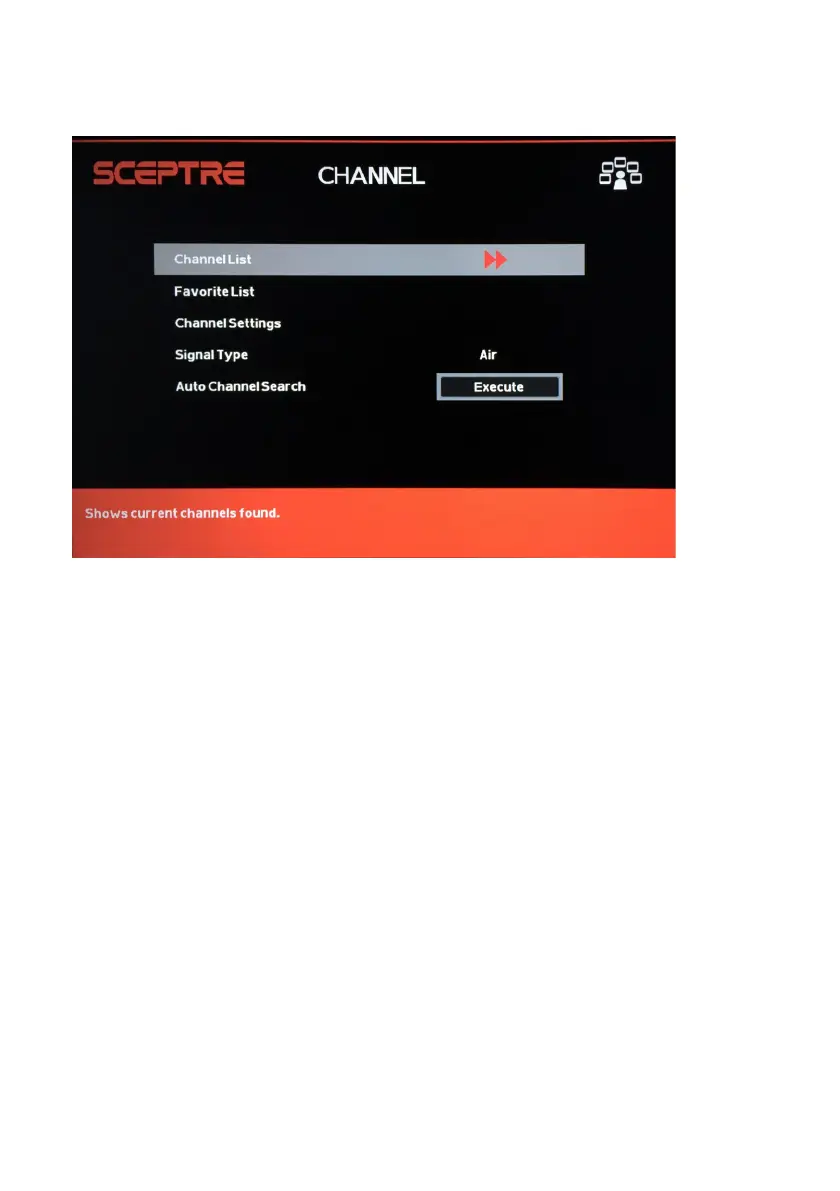 2. Press ◄ or ► to select CHANNEL and press ENTER.