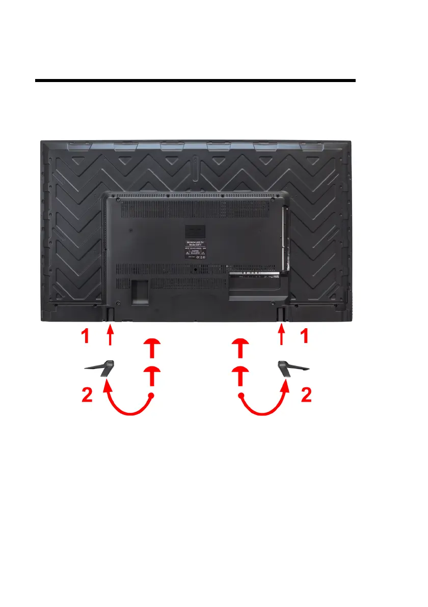1. To install the feet of the TV, lay the TV flat on a table. Afterwards obtain the two display