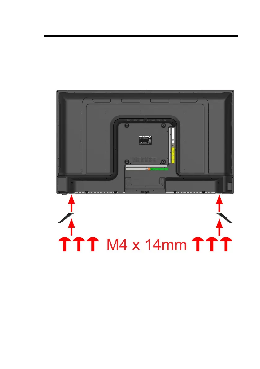 bottom of the TV. Match R feet to the R label on the bottom of the TV. Insert both