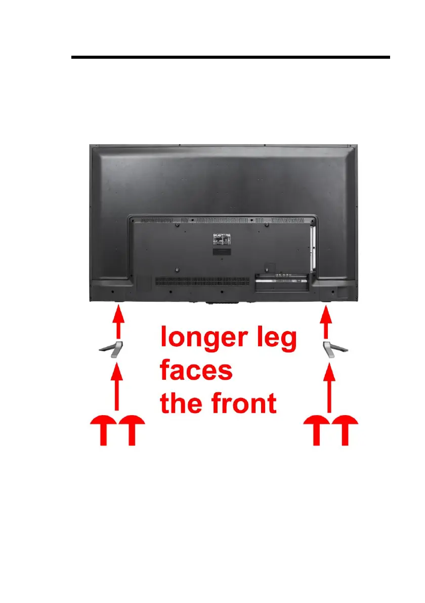 1. To install the feet of the TV, lay the TV flat on a table. Afterwards obtain the two