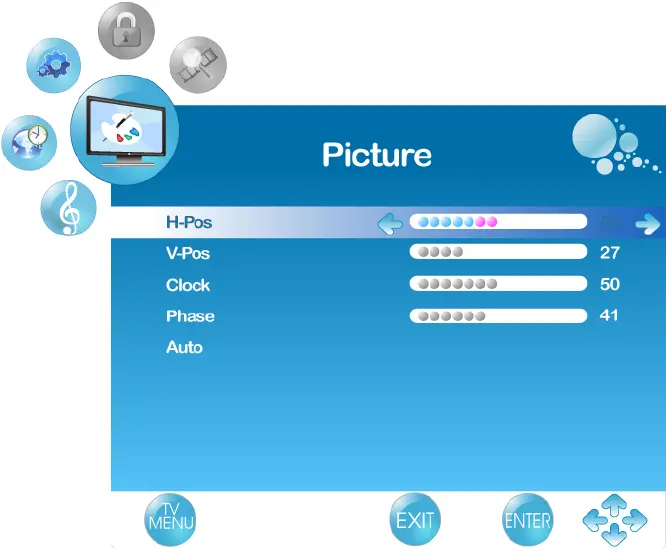 H-Pos: To adjust the horizontal position of the picture.