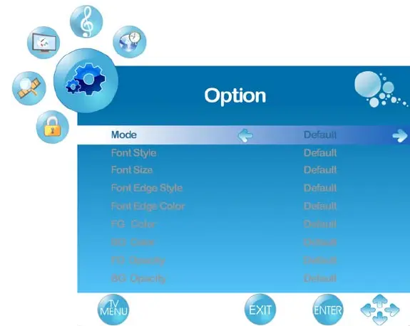 Basic Selection: To set basic analog closed caption options. (CC1~CC4,