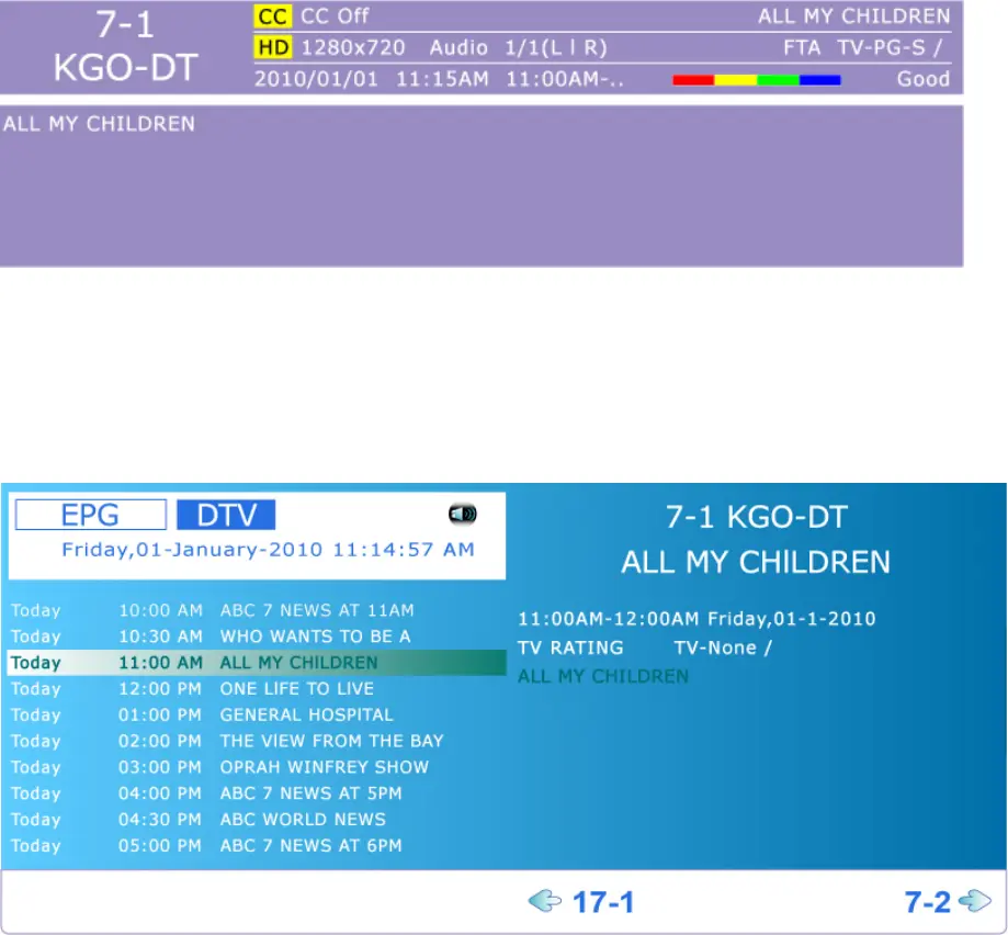 Press the GUIDE button on the remote control and the program information for the