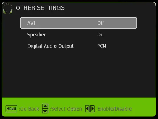 i. AVL – This feature adjusts the auto volume leveler enabling