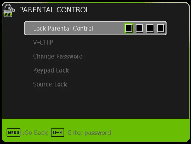 I. LOCK PARENTAL CONTROL – This feature allows you to input a password
