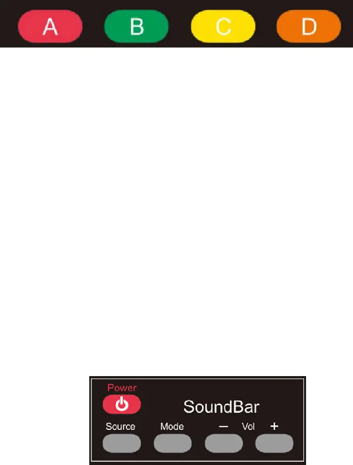 • Vol(+) – This button increases the volume of the Sound Bar.