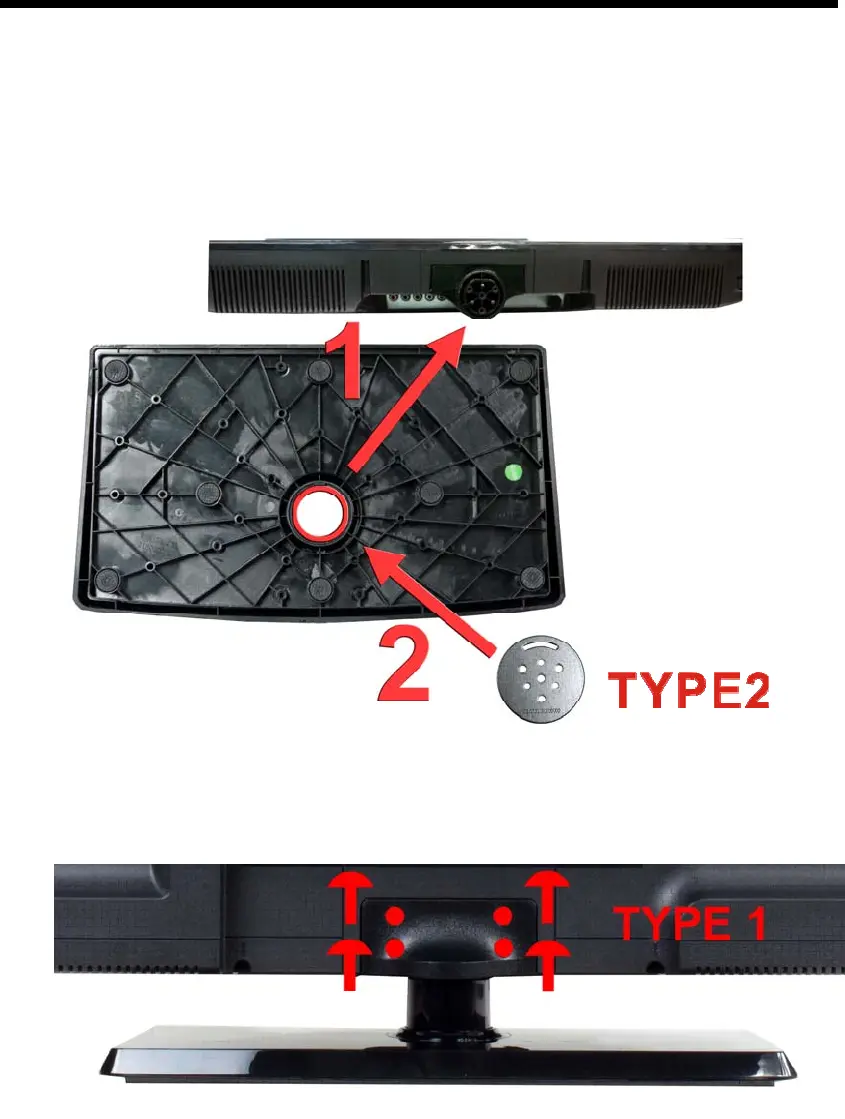 2. To install or remove the stand, screw in or remove the 4 screws indicated