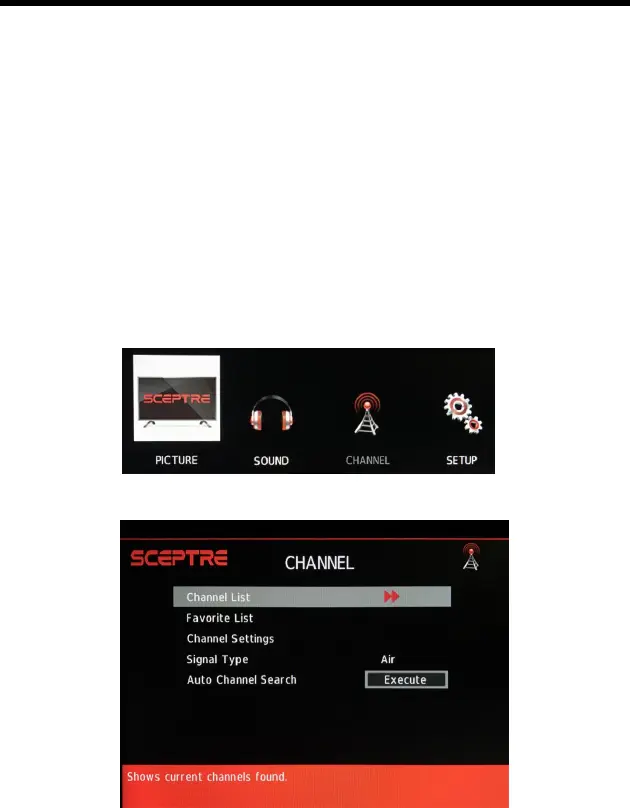 2. Use the ◄ or ► button to select the CHANNEL icon and press ENTER.