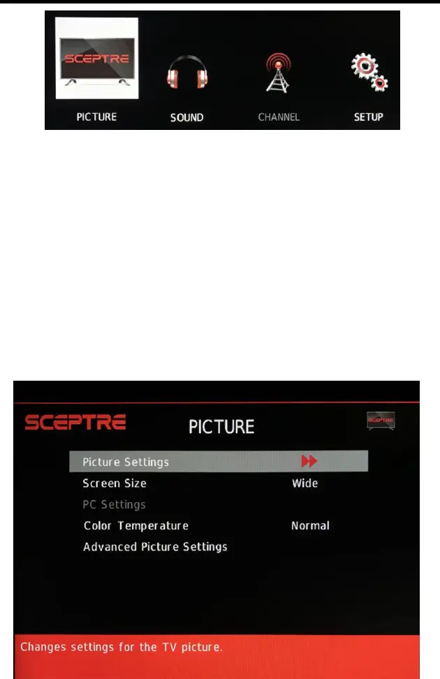 PICTURE – This main option has functions for changing the picture settings for all ports,