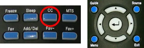 CC – Press this button to enable the CC function. You can then use the ▲▼ buttons to select if you