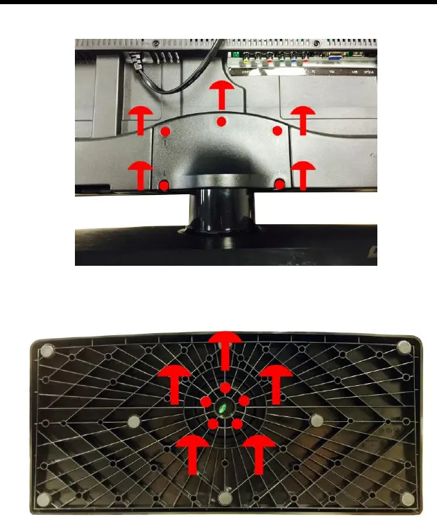 2. To install the base, place the display unit flat on a table. Afterwards attach the