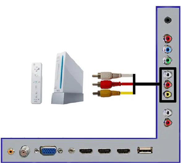 Wii™ and AV’s white connector port on the back side of your HDTV.
