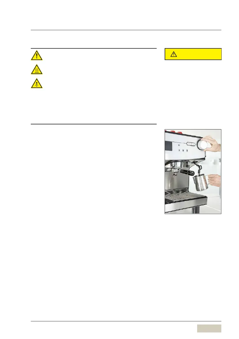 • Tijdens de afgifte van producten en stoom