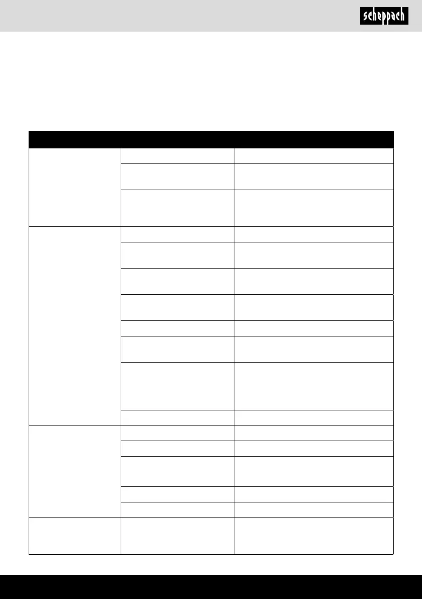 Fault Possible cause Remedy