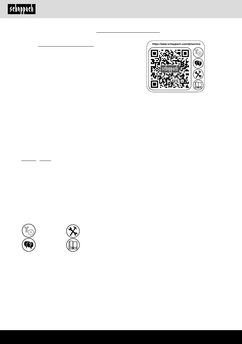 Telefon: +800 4002 4002 (Service-Hotline/Freecall Rufnummer dt. Festnetz**) · Telefax +49 [0] 8223 4002 20 · E-Mail: service@scheppach.com