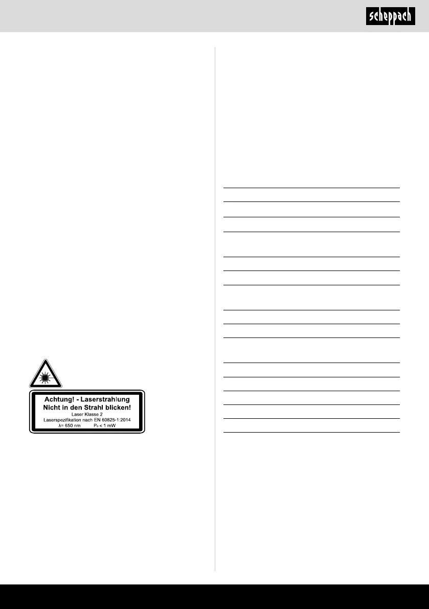 • Reparaturen am Laser dürfen nur vom Hersteller