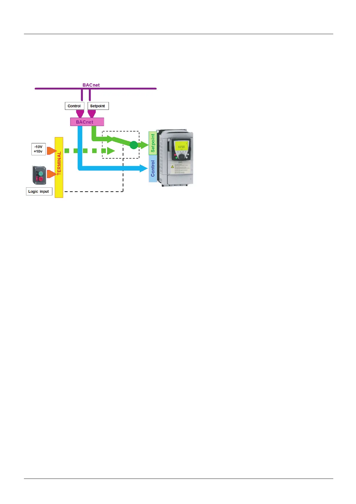 The command comes from BACnet. The setpoint comes either from BACnet or from the terminals. Depending on the configuration, the