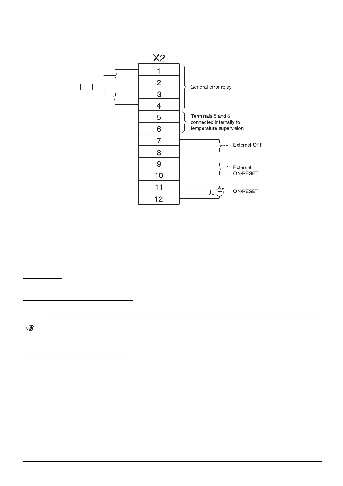 These connections can be used for an external ON signal (normally open contact) to start/reinitialize the braking unit.