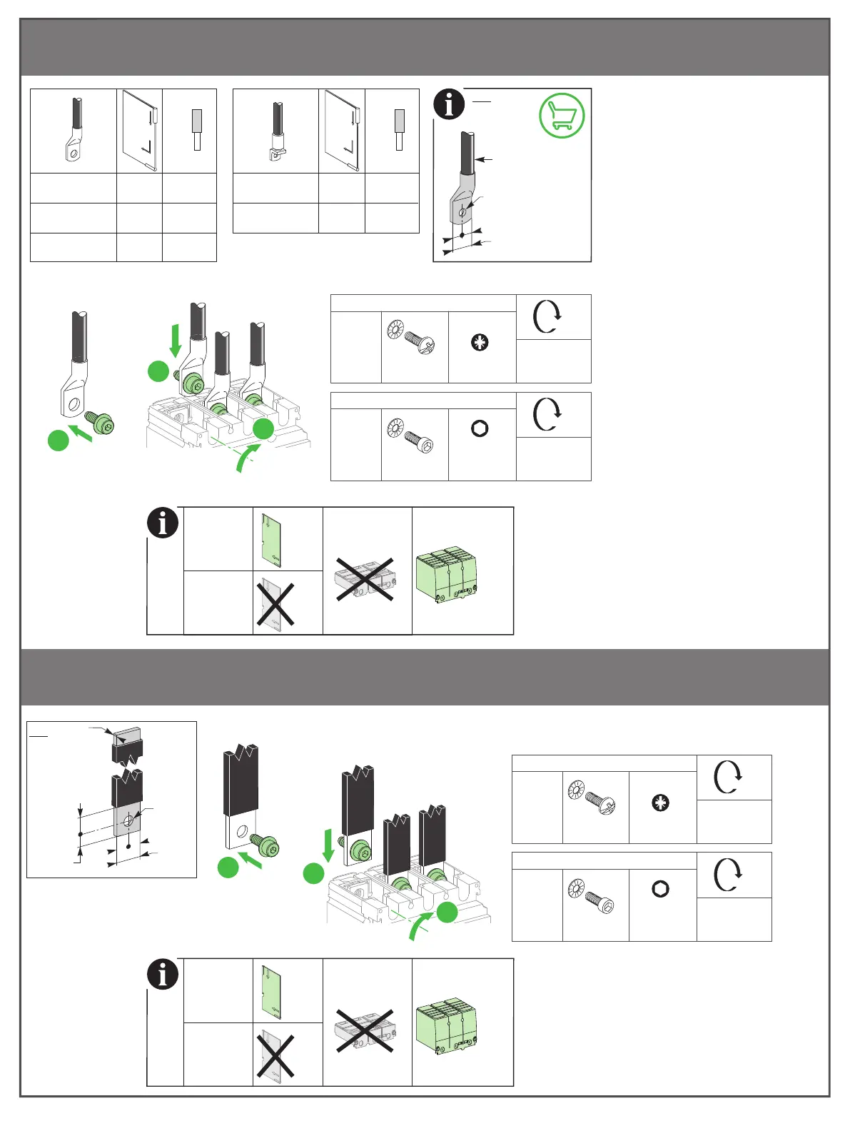 Pressklemmenadapter / Connessioni con capocorda a compressione / Conexões de bornes de parafusos /
