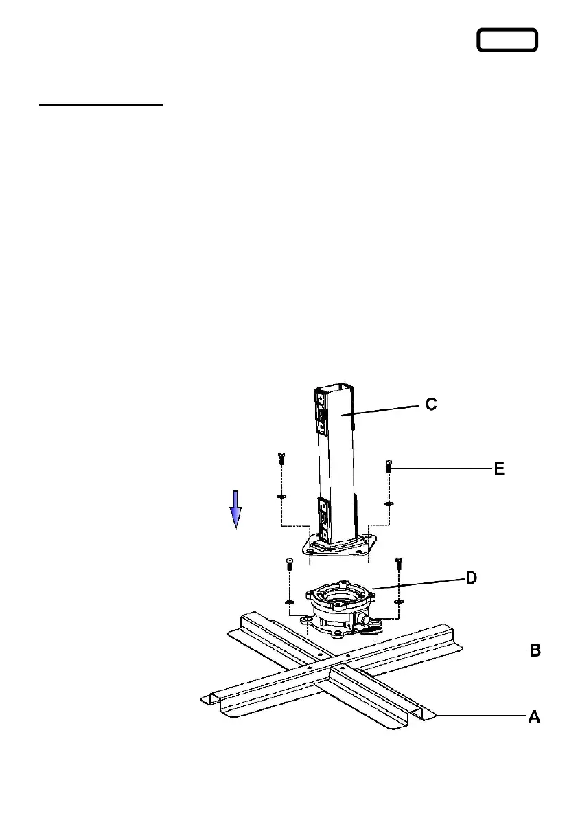 De seguida, aparafusar o suporte tubular (C) à placa giratória (D) .