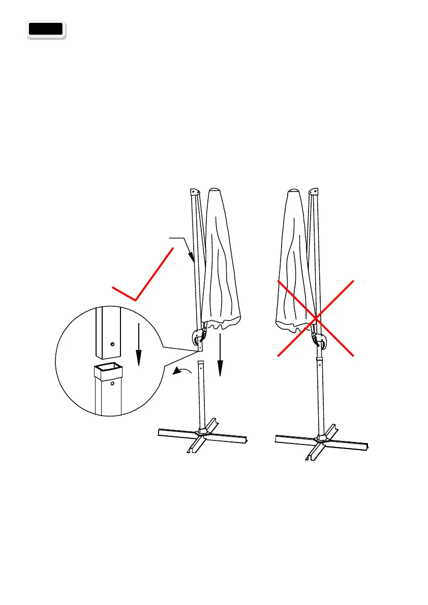 Podle vyobrazení nasaďte slunečník na trubku stojanu.