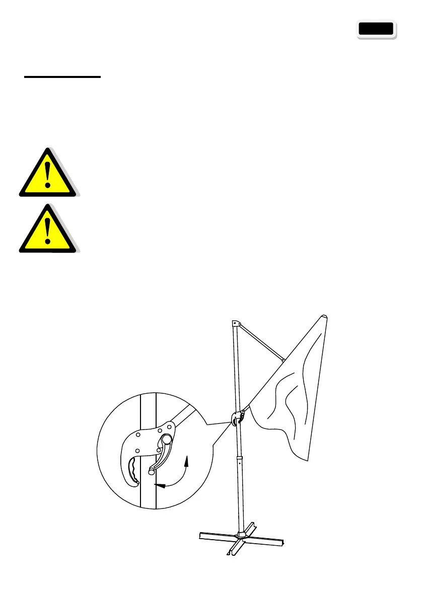 Během otevírání slunečníku otáčením kliky odblokujte ruční páčku na