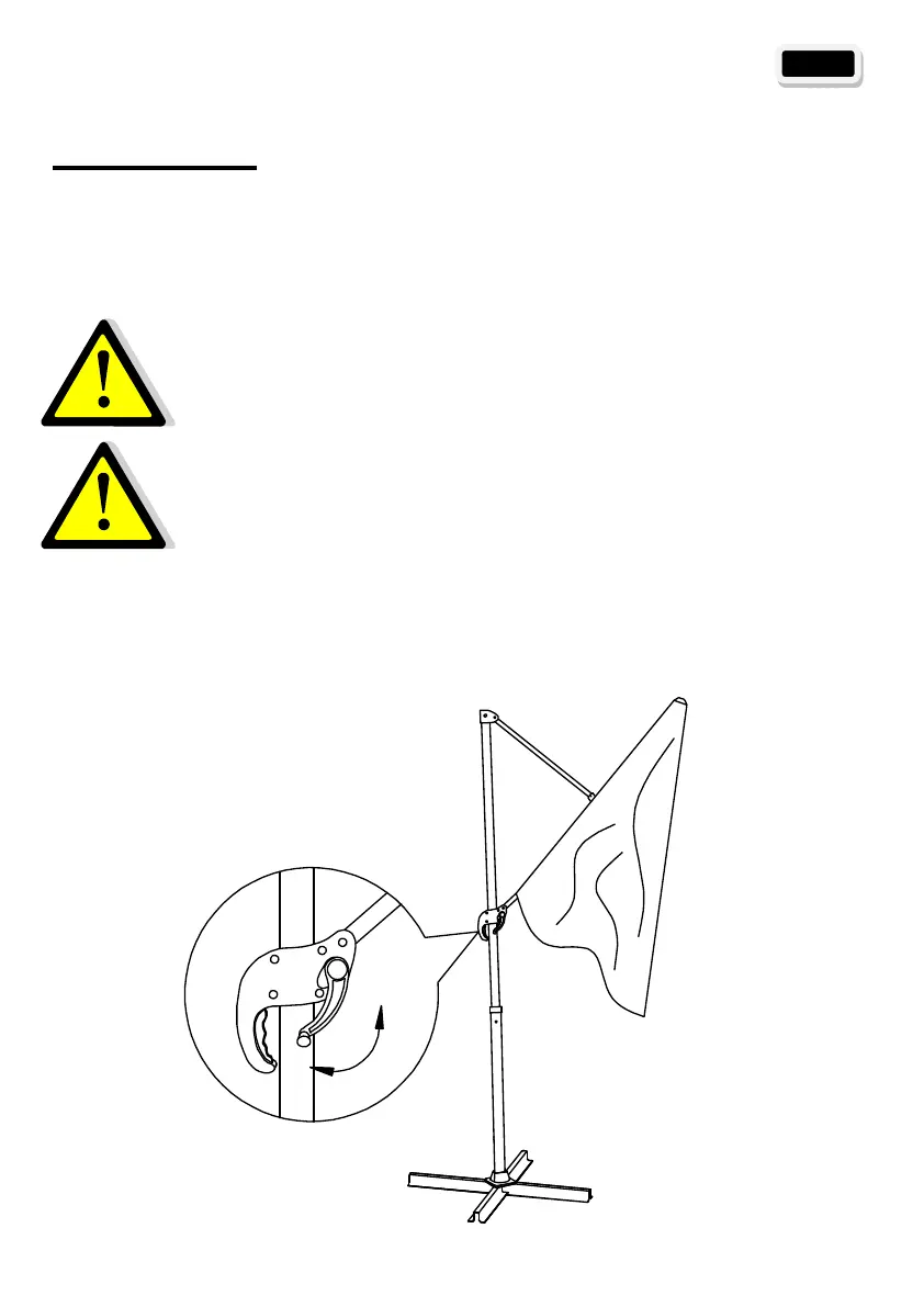 Während Sie den Schirm durch Drehen der Kurbel öffnen, entriegeln Sie