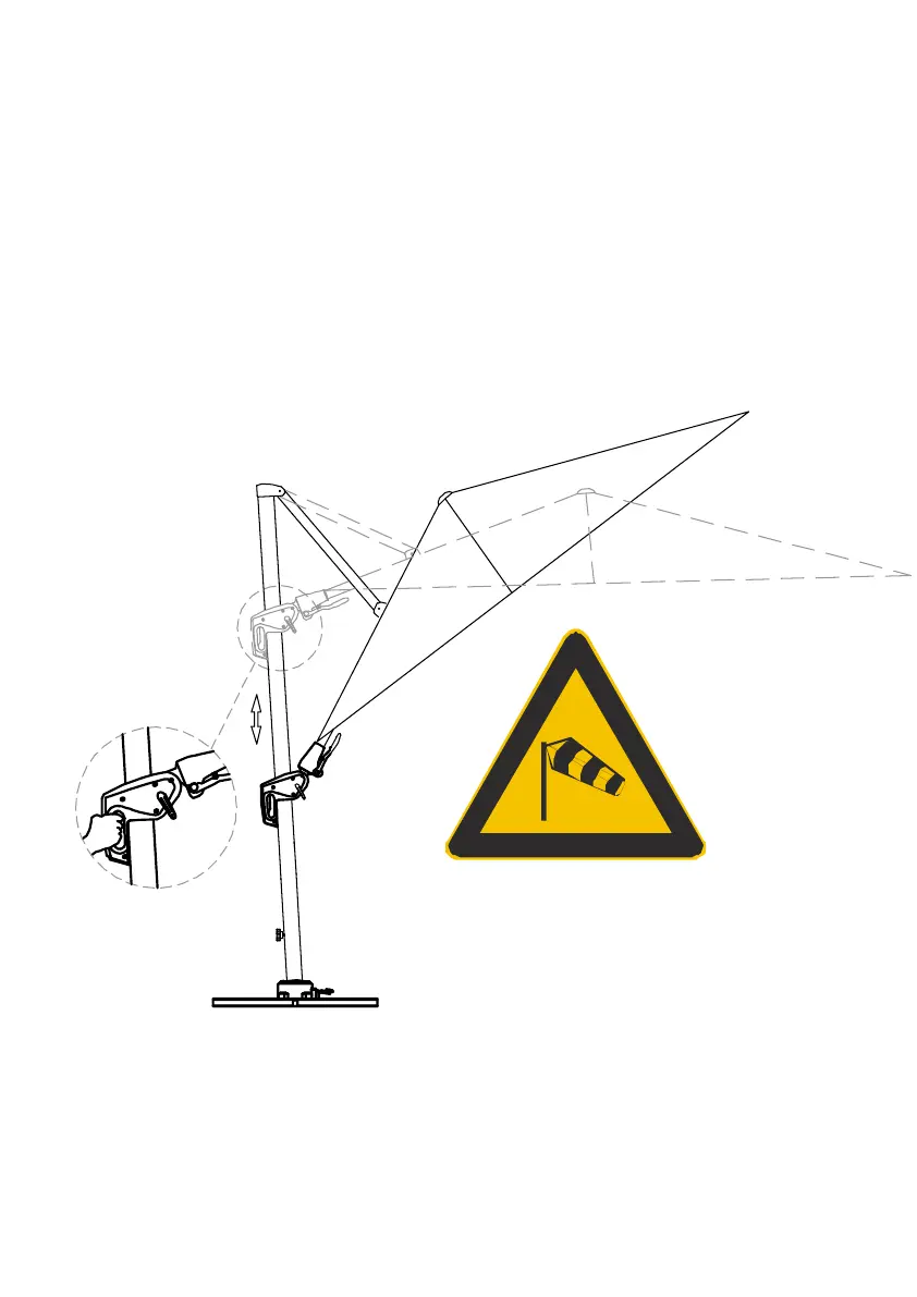 Lorsque le levier manuel est relâché, le parasol est bloqué dans la position