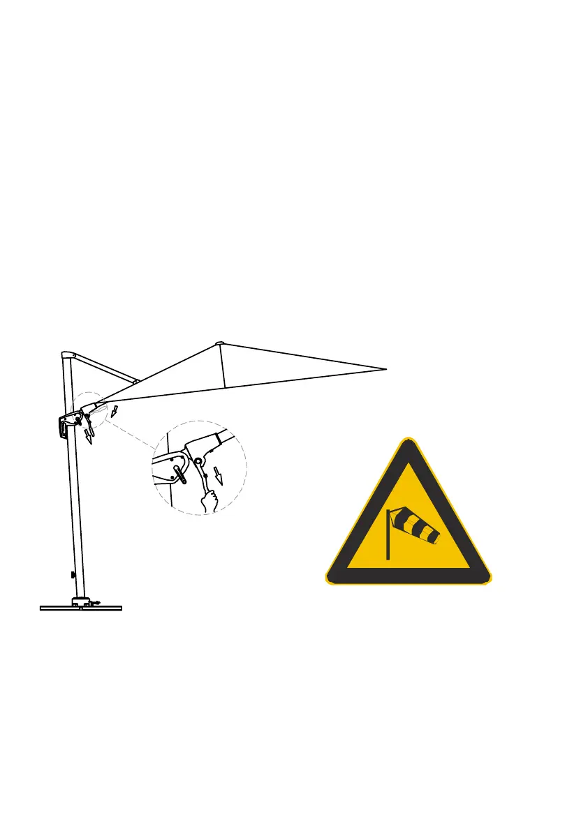 prise au vent et le parasol peut être endommagé ou basculer en cas de