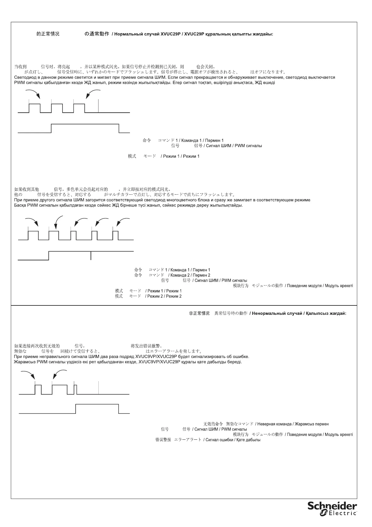 Lorsqu'elle reçoit successivement deux signaux PWM non valides, les modules XVUC9VP/XVUC29P déclenchent une alarme d'erreur.