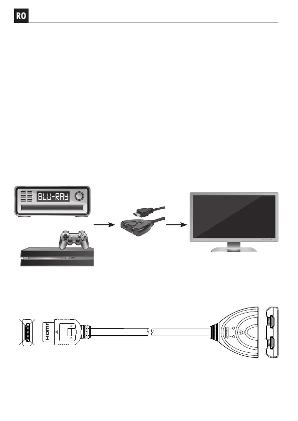 • Dacă o sursă este conectată sau deconectată, acest splitter HDMI