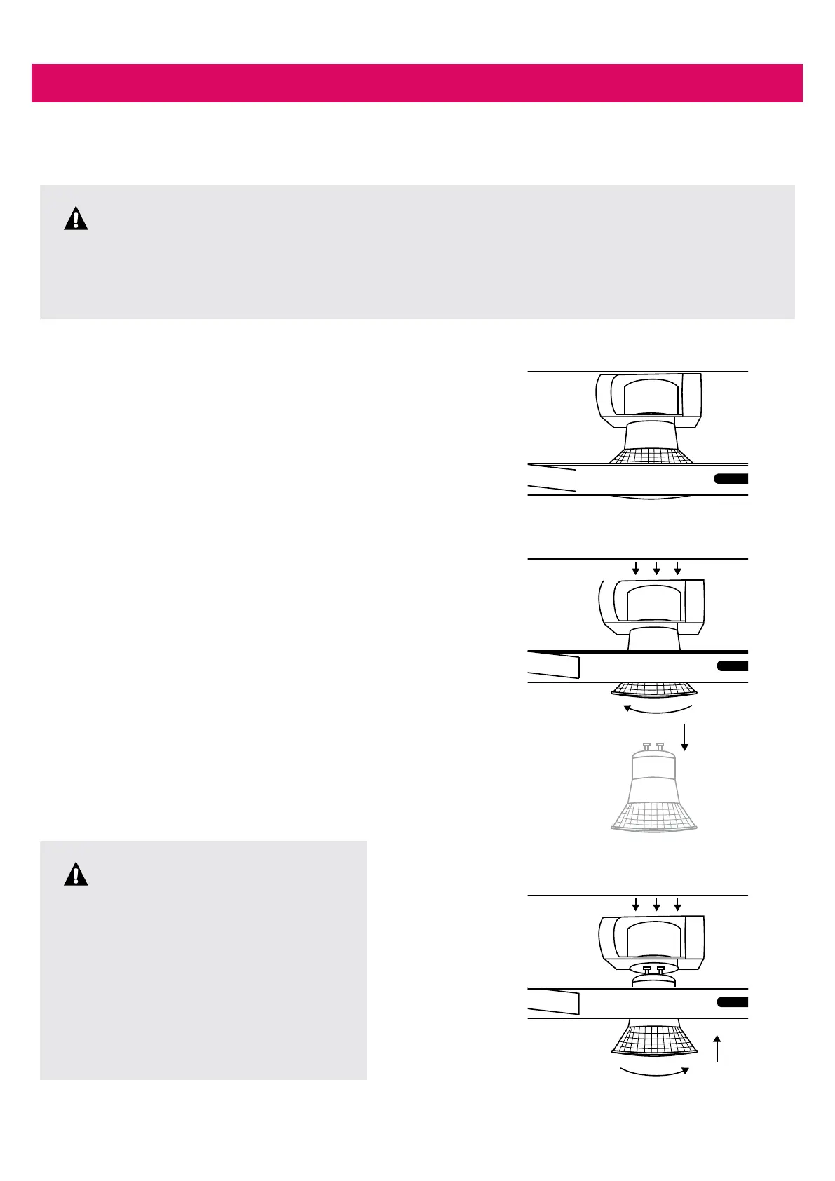 Always switch o and disconnect power before replacing the lights. Failure to do so may cause