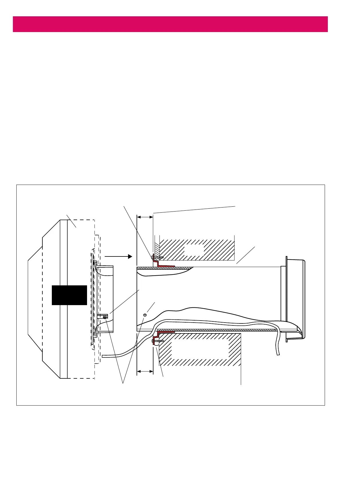This type of installation is similar to roof mounting, ensuring that the pipe extends at least 50mm past the wall