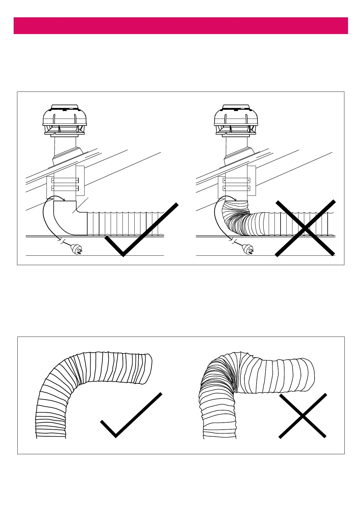 Please do not crush or kink exible ducting, as it will reduce air ow and may cause noise to occur through the