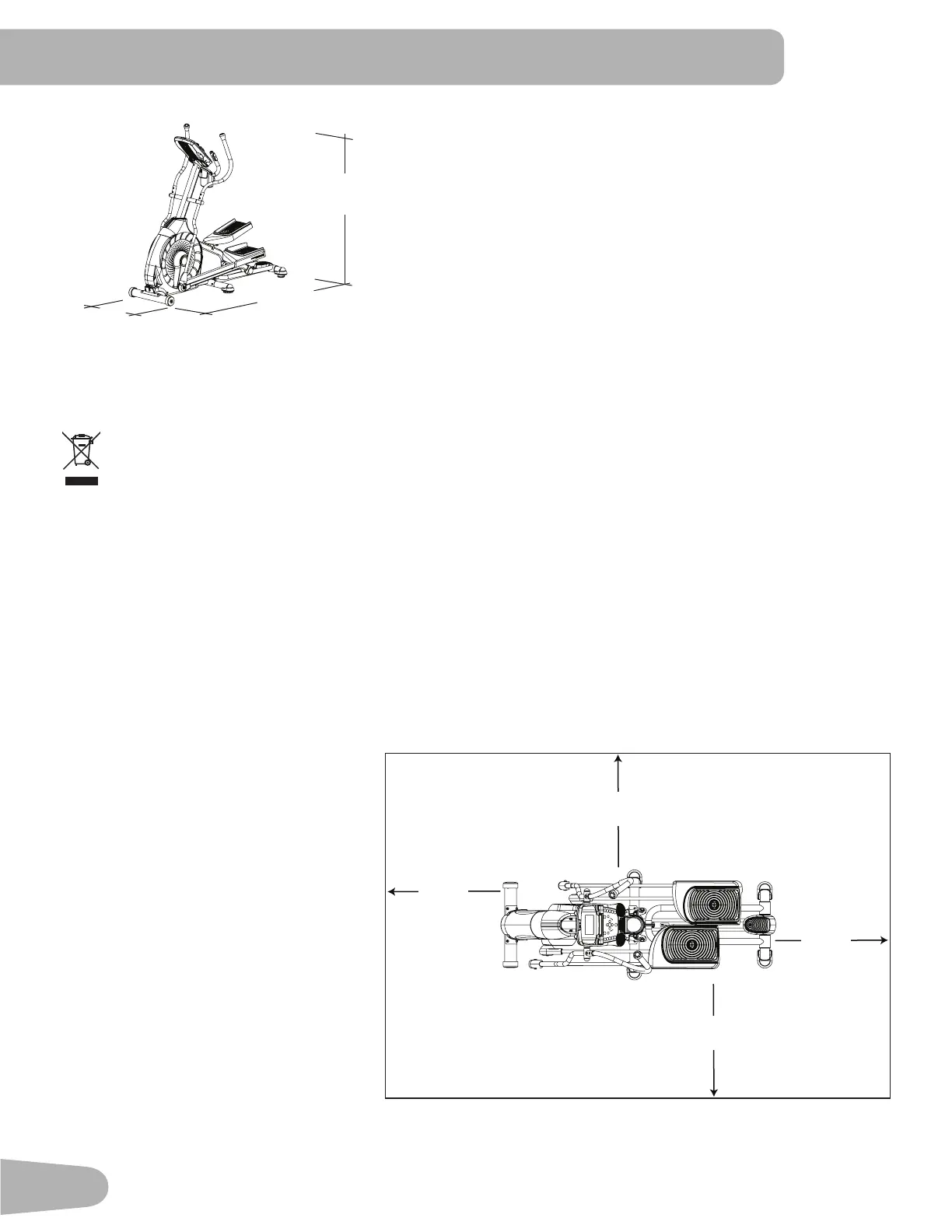 英寸x118.1英寸)的锻炼区域。确保您正使用的锻炼区域拥有足够的净空高度,考虑到用户身高和椭圆机的最大倾斜