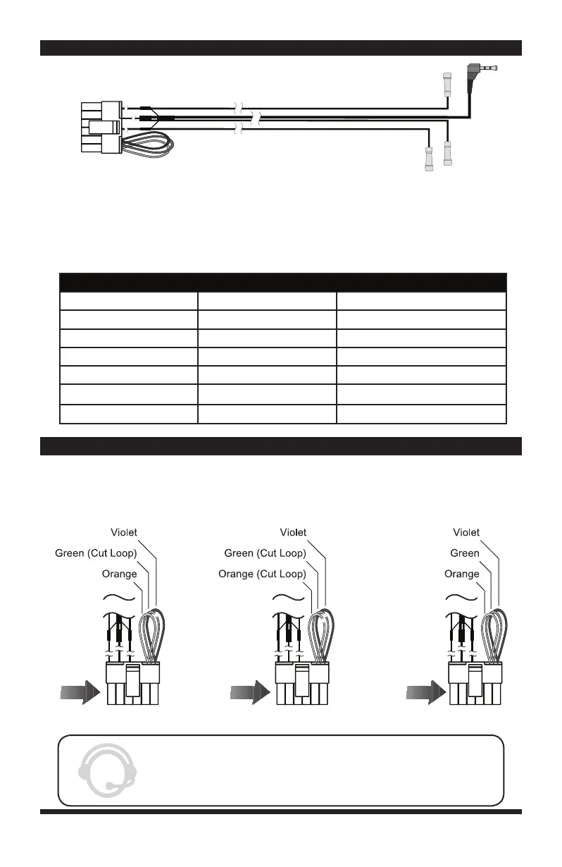 1. Prepare SWC steering wheel connector harness by using the chart below