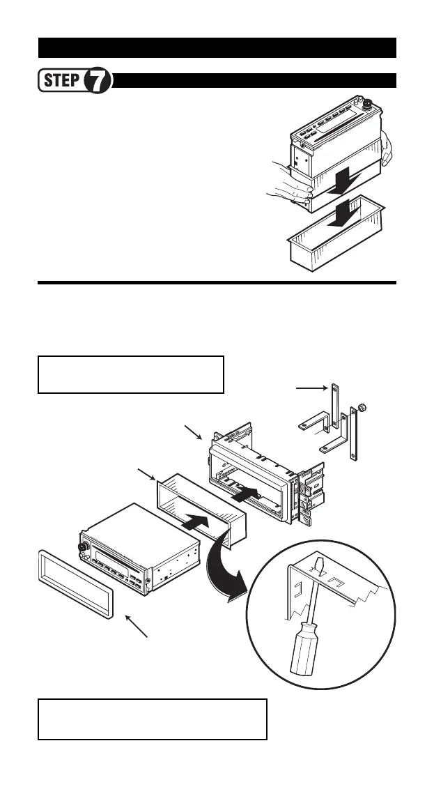 Slide the mounting sleeve (metal shroud) into the panel’s stereo opening and bend all available