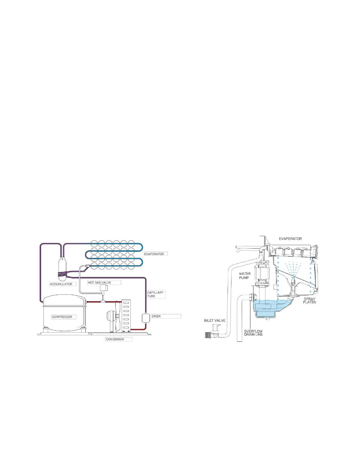 inverted mold cups of the evaporator. A small quantity of the sprayed water freezes into ice; the rest of it