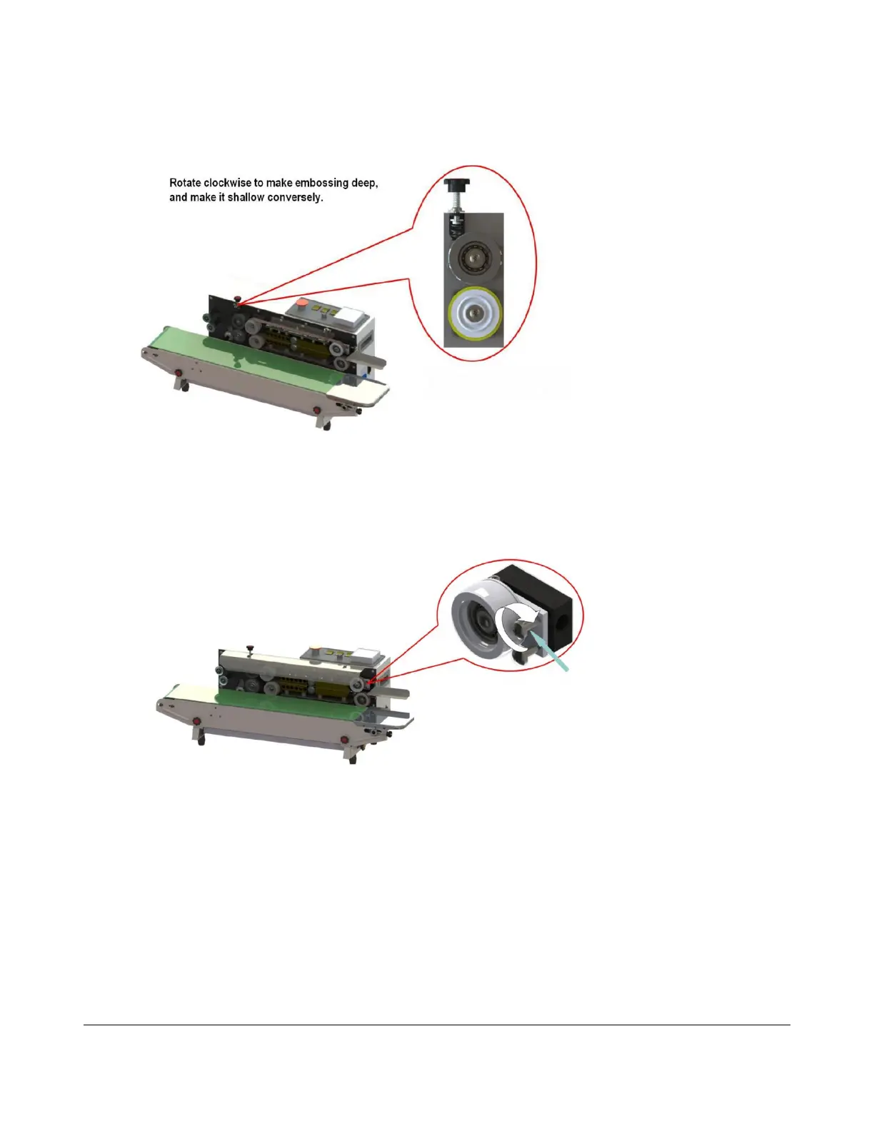 4. If the sealing belt is running off the guide wheels, make adjustments to the screws that are found on the