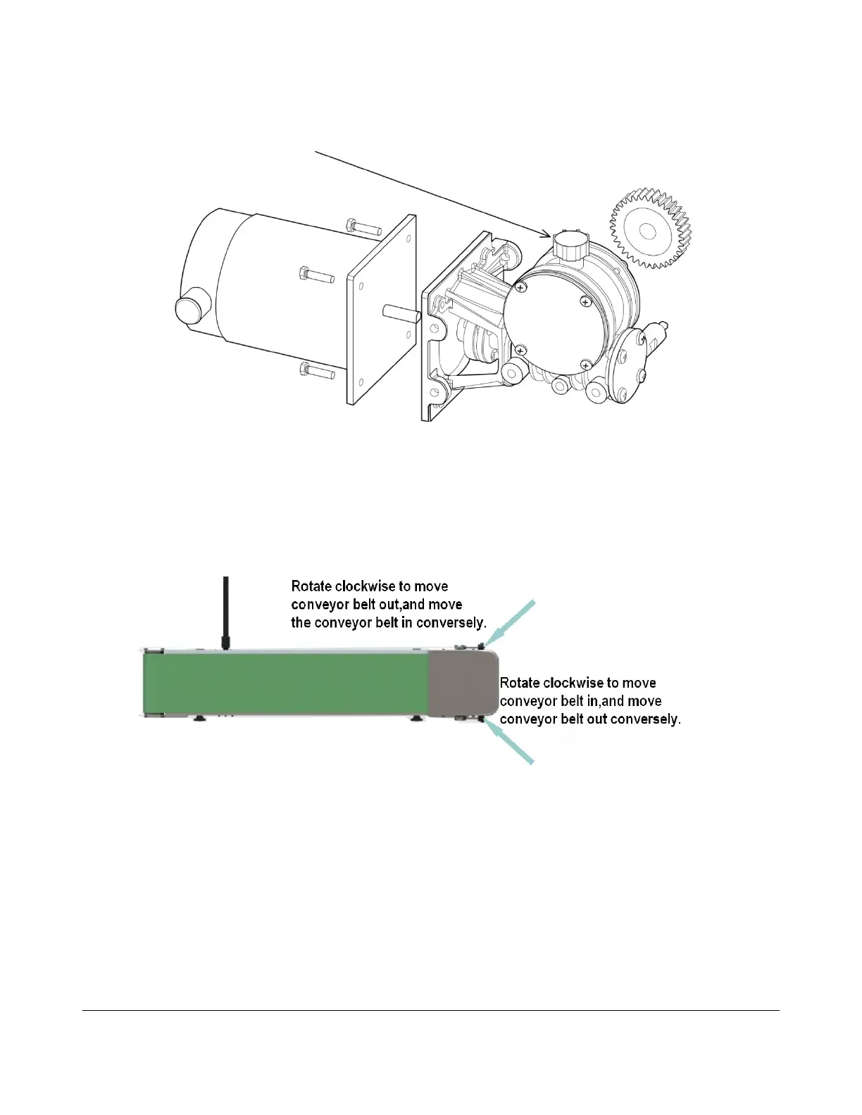 right side of the conveyor table. Keep the conveyor belt under tension state when adjusting.