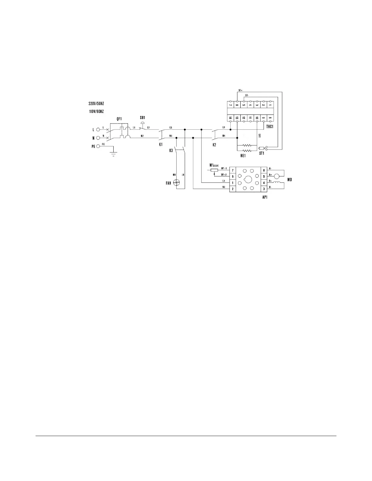 Figure 50. Electrical Circuit Diagram. (QF1) Breaker, (SB1) Switch/Emergency Stop, (K1) Switch/On-Off, (K2) Switch/Seal, (K3) Switch/Fan, (MD) DC Motor,