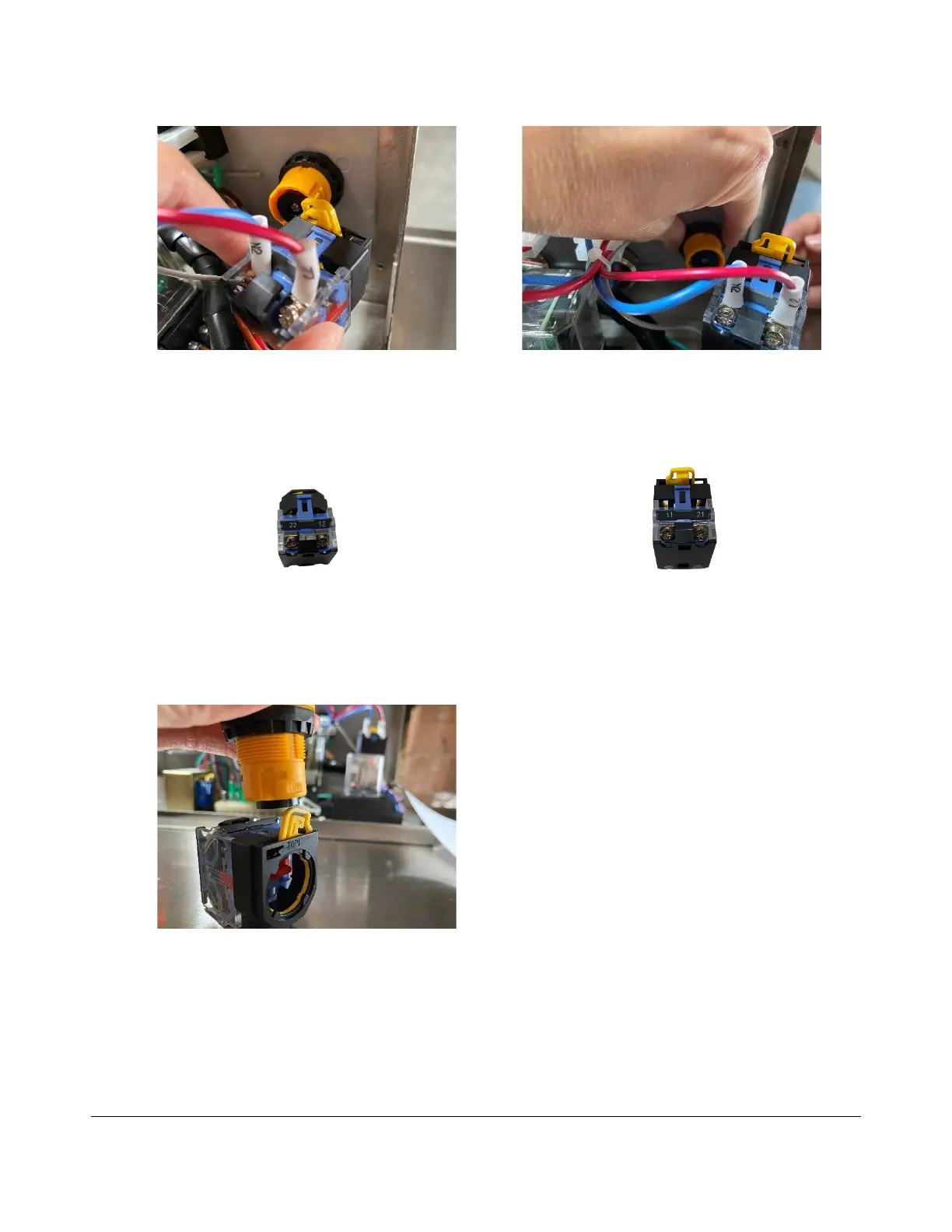 3. Make note of the wiring on the emergency stop and reconnect the new emergency stop. Blue wires