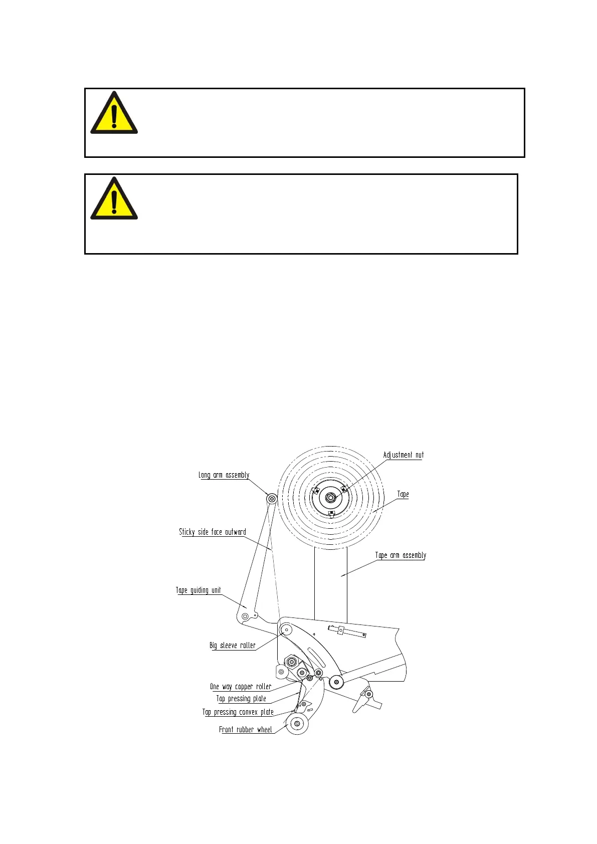 Pull out the tape by passing the copper roller, then the tension roller, the copper wheel, and