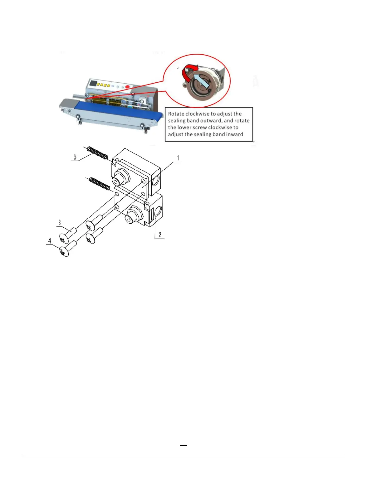 Figure 12. (1) Driven Wheel Seat (Adjusting Block), (2) Driven Wheel Seat (Adjusting Block), (3)/(4) Adjusting Screws, (5) Springs