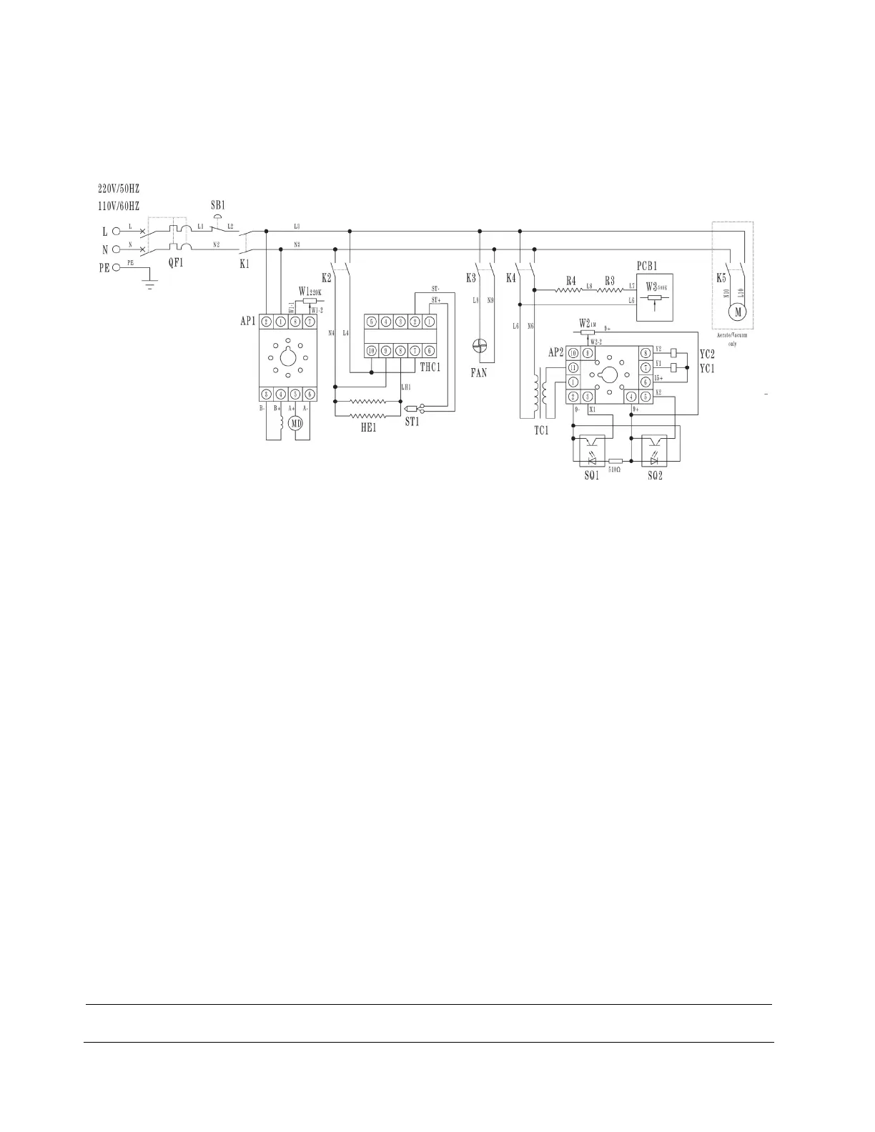 Figure 3. Electrical Circuit Diagram. (QF1) High Rupture Switch, (SB1) Emergency Stop Switch, (K1) Switch/Power, (K2) Switch/Heat, (K3) Switch/Fan,