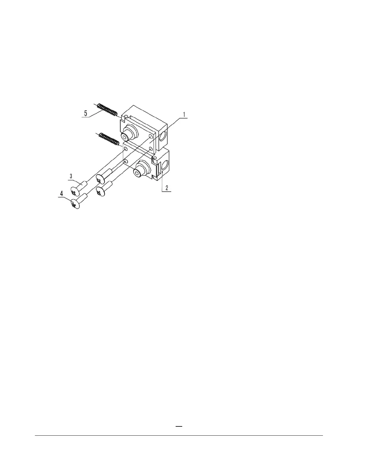 Figure 11. (1) Driven Wheel Seat (Adjusting Block), (2) Driven Wheel Seat (Adjusting Block), (3)/(4) Adjusting Screws, (5) Springs