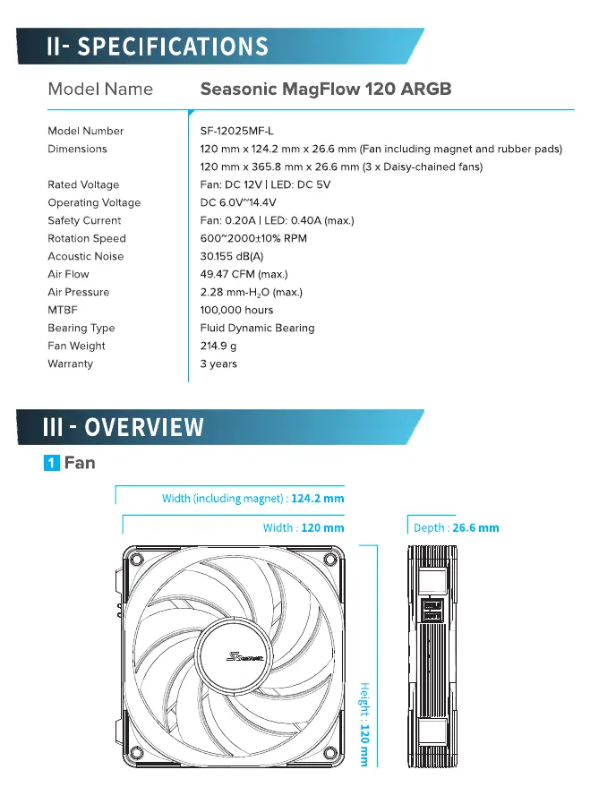 Bekijk gratis de handleiding van Seasonic MagFlow ARGB, stel vragen en lees de antwoorden op veelvoorkomende problemen, of gebruik onze assistent om sneller informatie in de handleiding te vinden of uitleg te krijgen over specifieke functies.